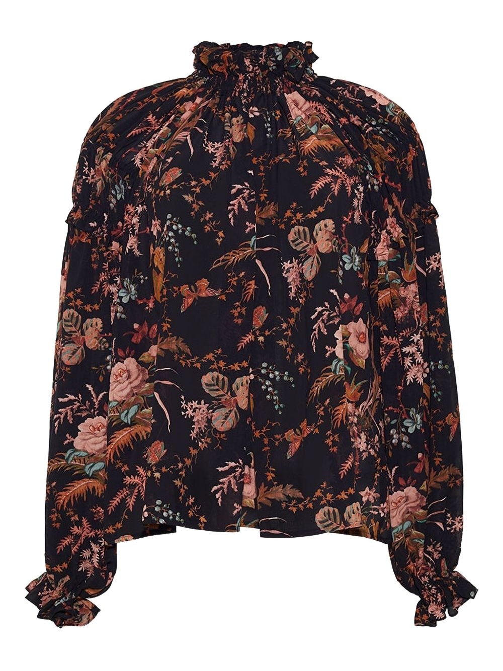Ipanema high-neck floral blouse Highlights - Black - Floral print - High neck - Ruffled cuffs - Long sleeves Imported Composition Viscose 100% Washing instructions Read Manufacturer Guidelines