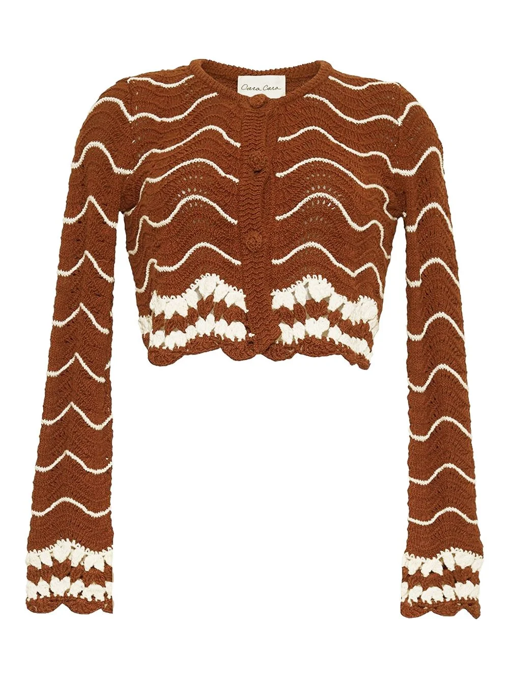Jolene cardigan Highlights - Brown - Wave pattern - Crochet knit - Button fastening - Scalloped hem - Long sleeves Imported Composition Cotton 100% Washing instructions Read Manufacturer Guidelines
