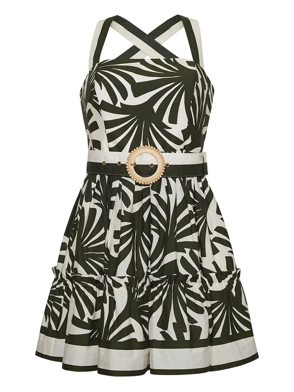 Julietta mini dress Highlights - White/green - Cotton - Geometric print - Rear criss-cross straps - Belted waist - Tiered skirt Imported Composition Cotton 100% Washing instructions Read Manufacturer Guidelines