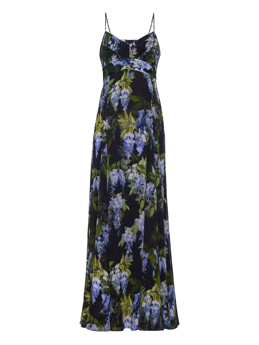 Kensington floral-print cut-out dress Highlights - Black - Floral print - Linen/silk - Chiffon texture - Cut-out detail - V-neck - Pleated detailing - Spaghetti straps Imported Composition Body: Cotton 100%, Silk 100% Lining: Viscose 100% Washing instructions Hand Wash