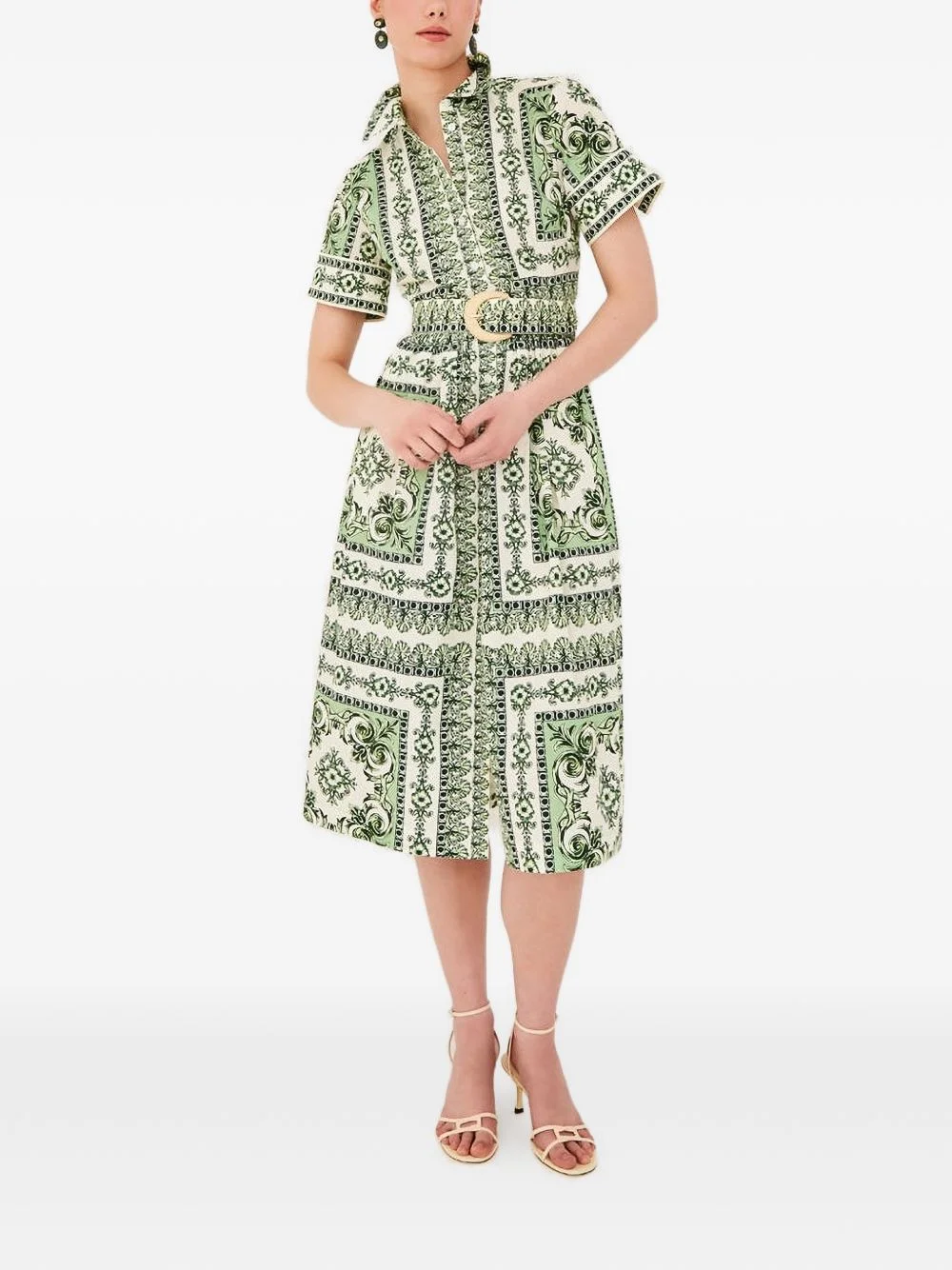 Malena short-sleeve midi dress Highlights - Mint green - Patterned - Belt - Short sleeves - Shirred waist - A-line skirt Imported Composition Cotton 100% Washing instructions Dry Clean Only