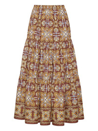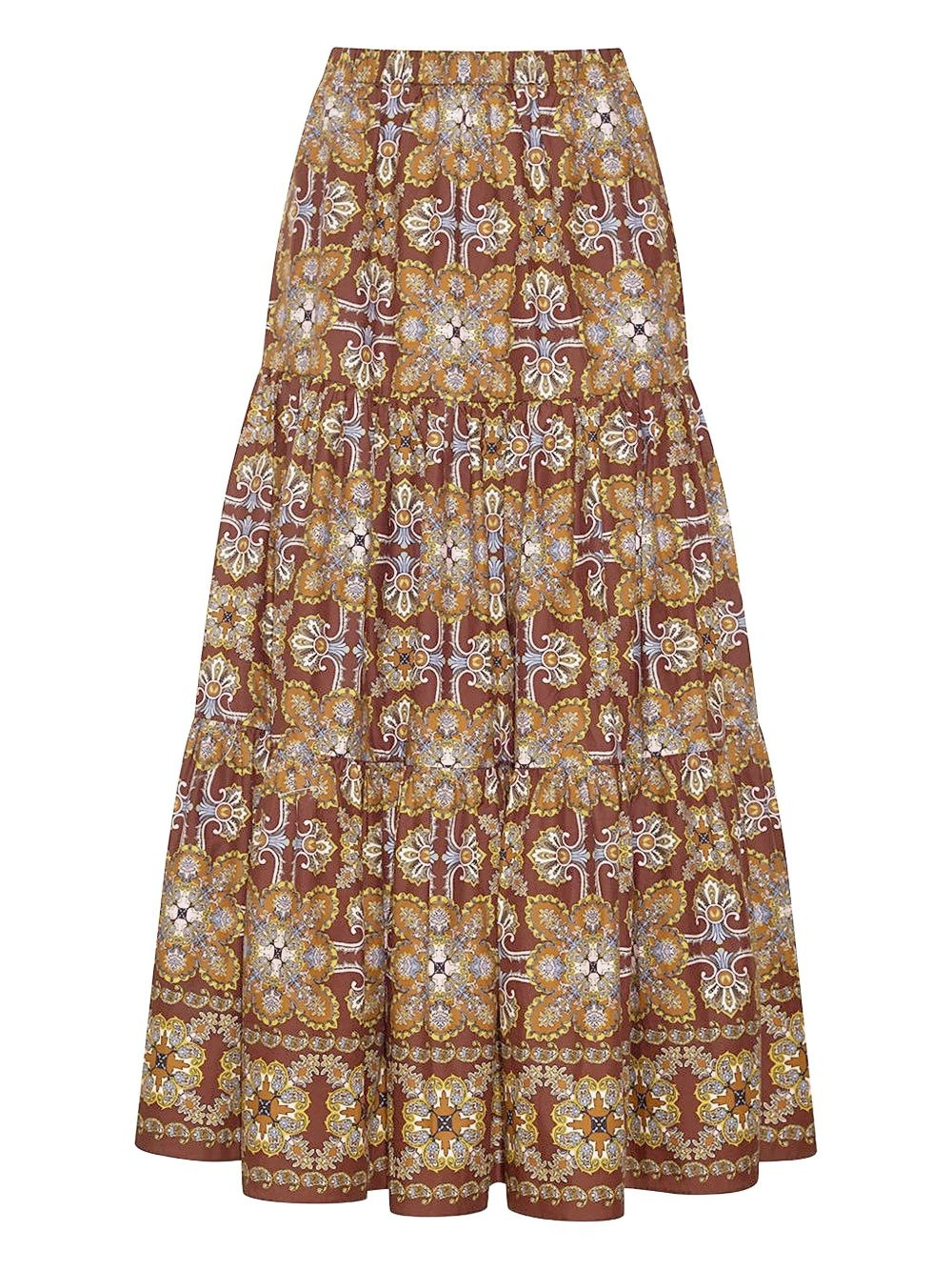 Melanie patterned midi skirt Highlights - Brown - Patterned voile - Tiered design - Elasticated waistband - Floral print - Geometric print Imported Composition Cotton 100% Washing instructions Dry Clean Only