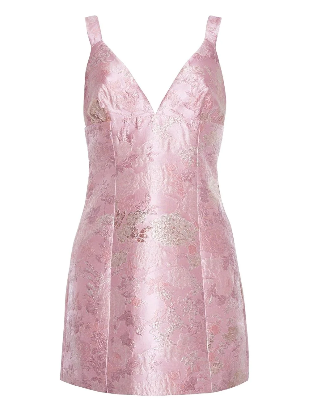 Naples matelasse V-neck mini dress Highlights - Pink - V-neck - Sleeveless - A-line skirt - Floral pattern Imported Composition Polyester 95%, Metallised Fibres 5% Lining: Viscose 100% Washing instructions Dry Clean Only