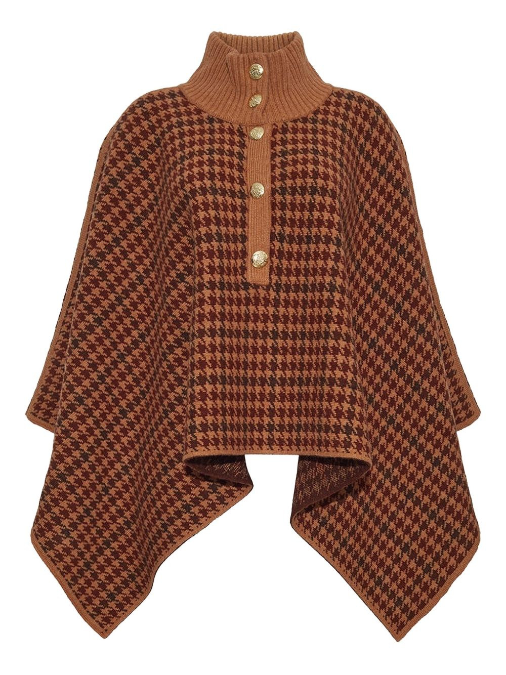 Pagoda high-neck houndstooth cape Highlights - Camel brown - Houndstooth pattern - High neck - Button fastening - Wool - Angled hem Imported Composition Wool 100% Washing instructions Dry Clean Only