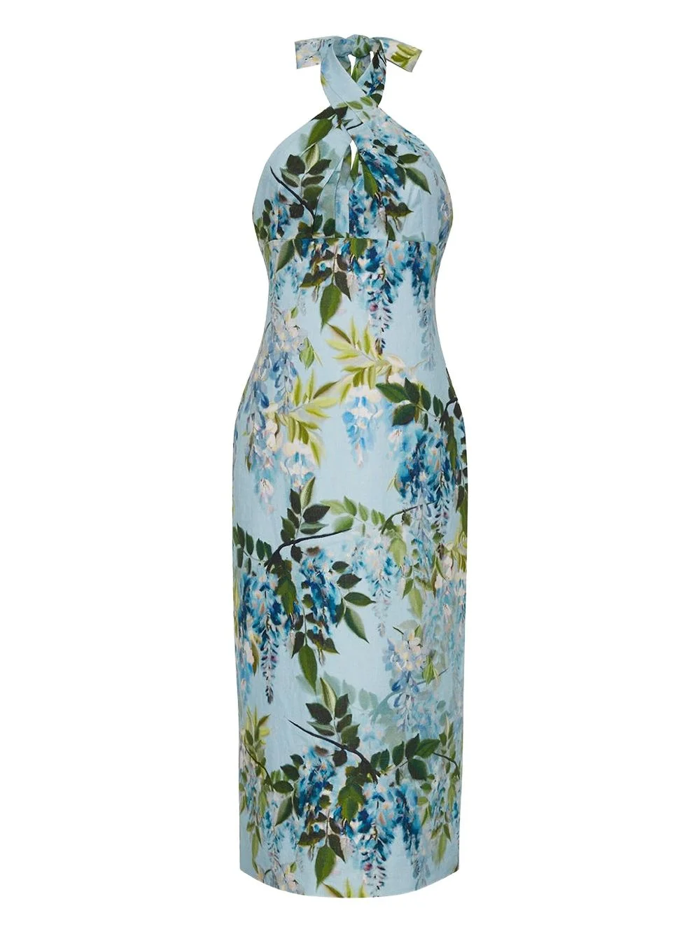 Perla floral-print halterneck dress Highlights - Light blue - Floral print - Halterneck - Twisted detail - Sleeveless - Linen - Straight hem Imported Composition Outer: Linen/Flax 100% Lining: Cotton 100% Washing instructions Hand Wash