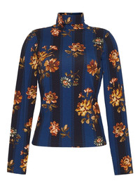 Piper top Highlights - Navy blue - Cotton blend - Floral motif - Turtleneck - Long sleeves - Straight hem Imported Composition Cotton 50%, Modal 50% Washing instructions Read Manufacturer Guidelines