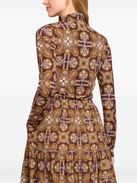 printed mock-neck top Highlights - Brown - Patterned - Mock neck - Long sleeves - Fitted - All-over print Imported Composition Viscose 93%, Spandex/Elastane 7% Washing instructions Dry Clean Only