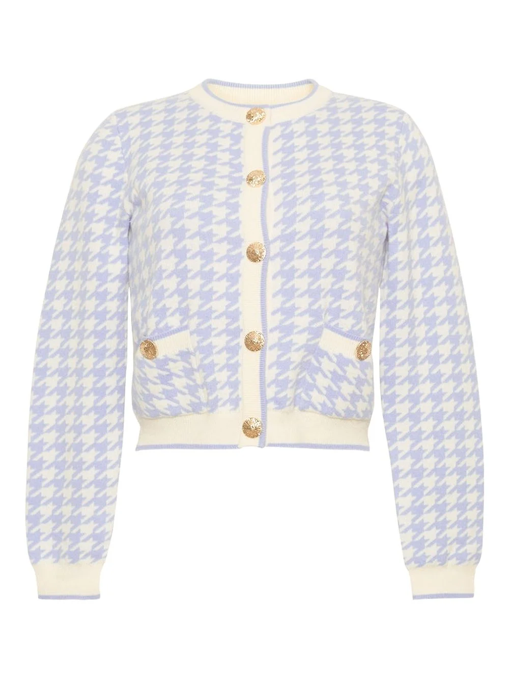 Priscilla houndstooth buttoned cardigan Highlights - Light blue - Houndstooth pattern - Gold-tone buttons - Patch pockets - Crew neck - Ribbed hem Imported Composition Wool 90%, Cashmere 10% Washing instructions Dry Clean Only
