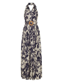 Quentin floral belted maxi dress Highlights - White and navy blue - Floral print - Collared - Sleeveless - Belt - Button fastening Imported Composition Cotton 100% Washing instructions Dry Clean Only