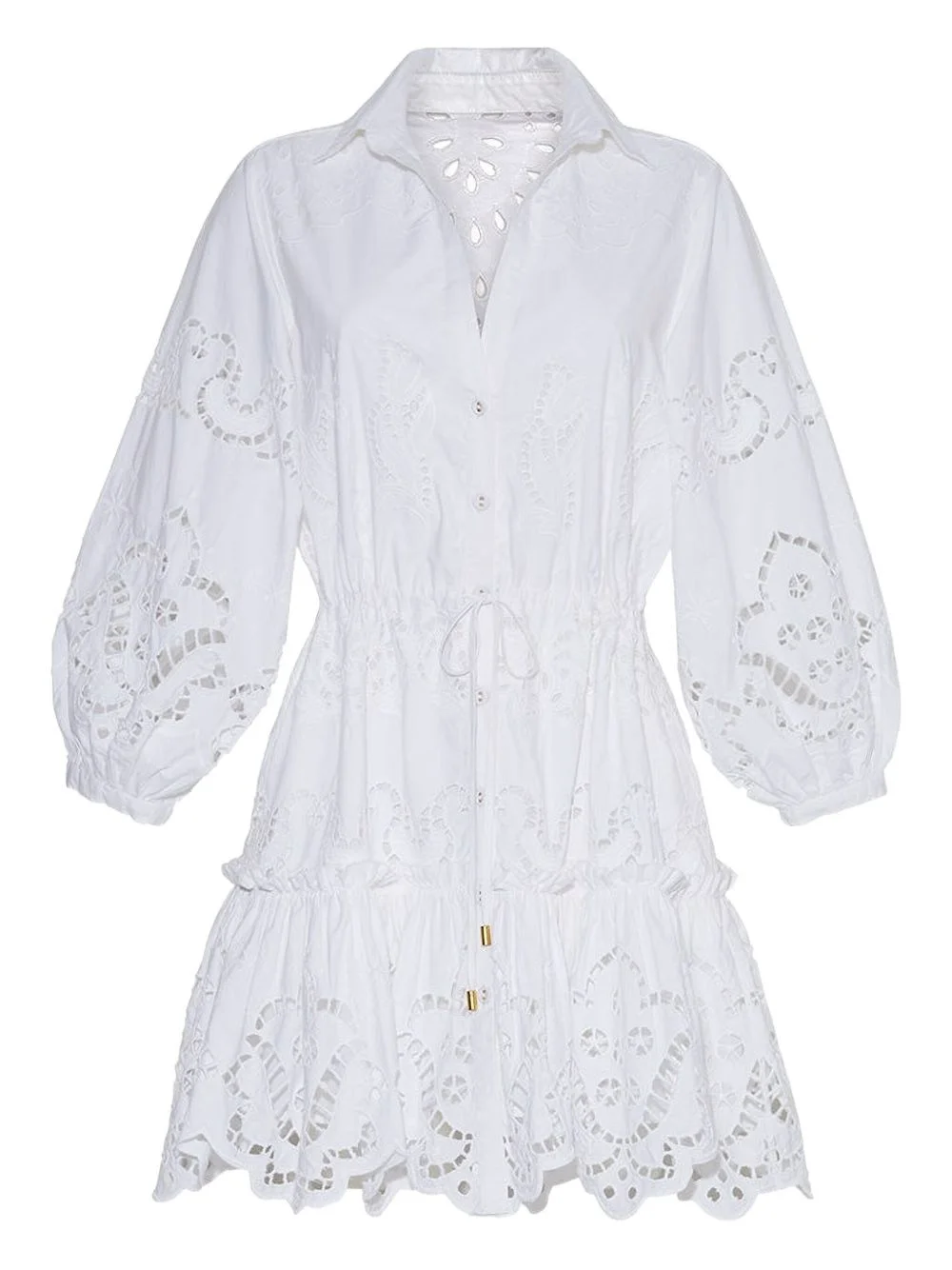 Robin mini dress Highlights - White - Cotton - Embroidered eyelet detail - Tiered skirt - Three-quarter length sleeves - Front button fastening Imported Composition Cotton 100% Washing instructions Read Manufacturer Guidelines