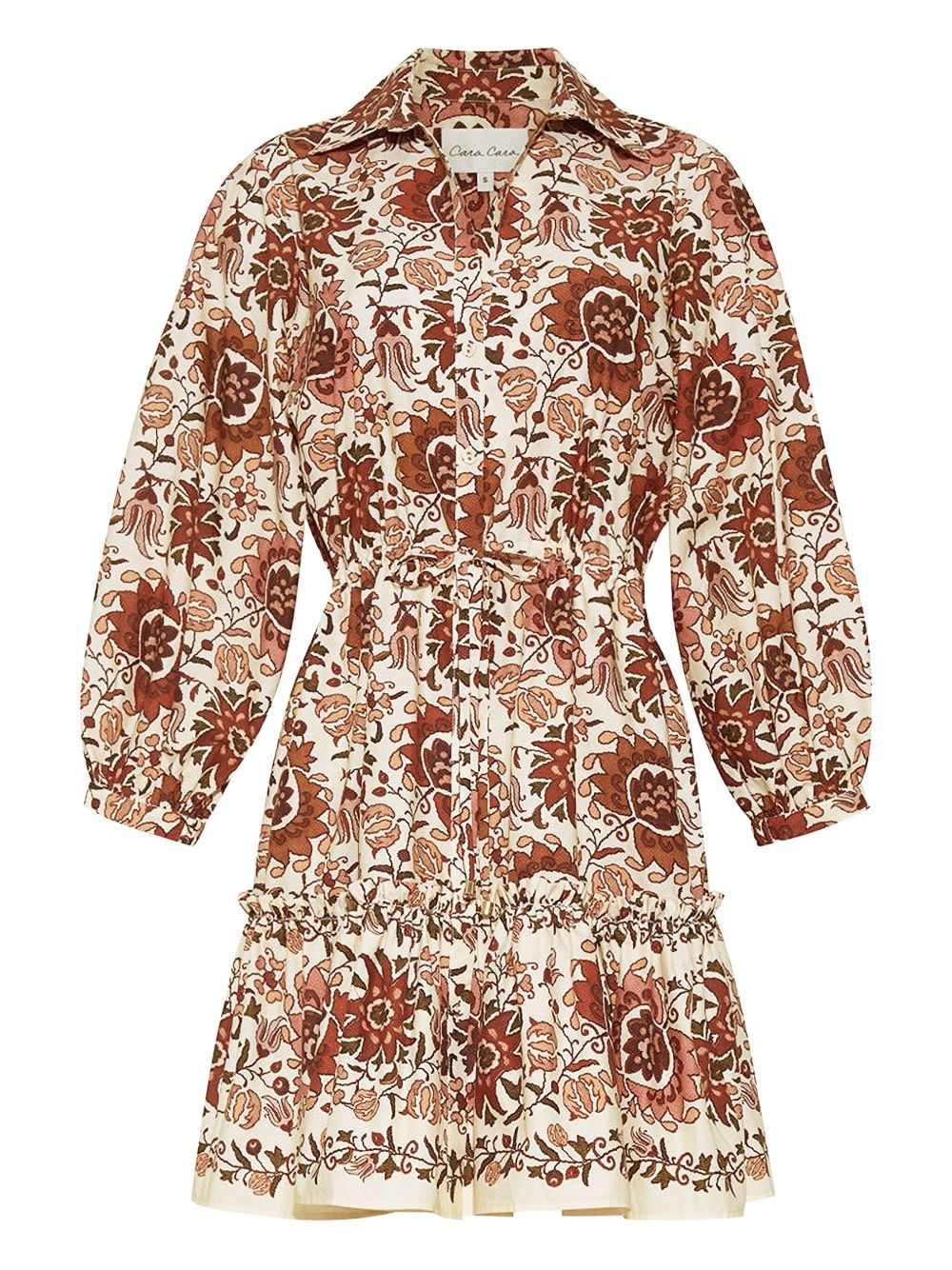Robin mini dress Highlights - Ivory/multicolour - Floral print - Button fastening - Puffed sleeves - Drawstring fastening waist - Ruffle hem Imported Composition Cotton 100% Washing instructions Read Manufacturer Guidelines