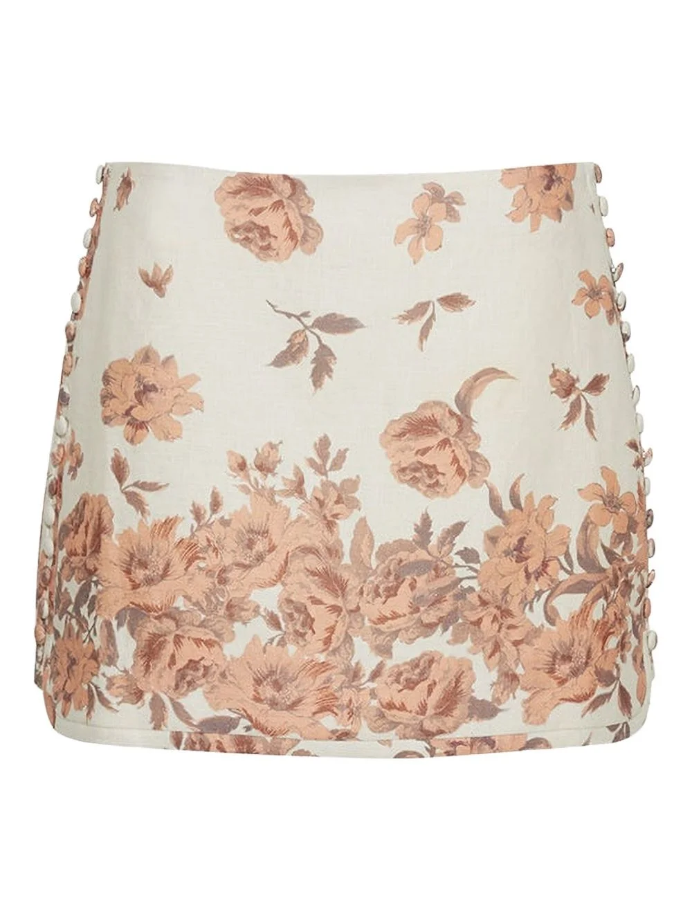 Roseland mini skirt Highlights - Off-white - Floral print - Linen - Button embellishment Imported Composition Lining: Cotton 100% Outer: Linen/Flax 100% Washing instructions Read Manufacturer Guidelines