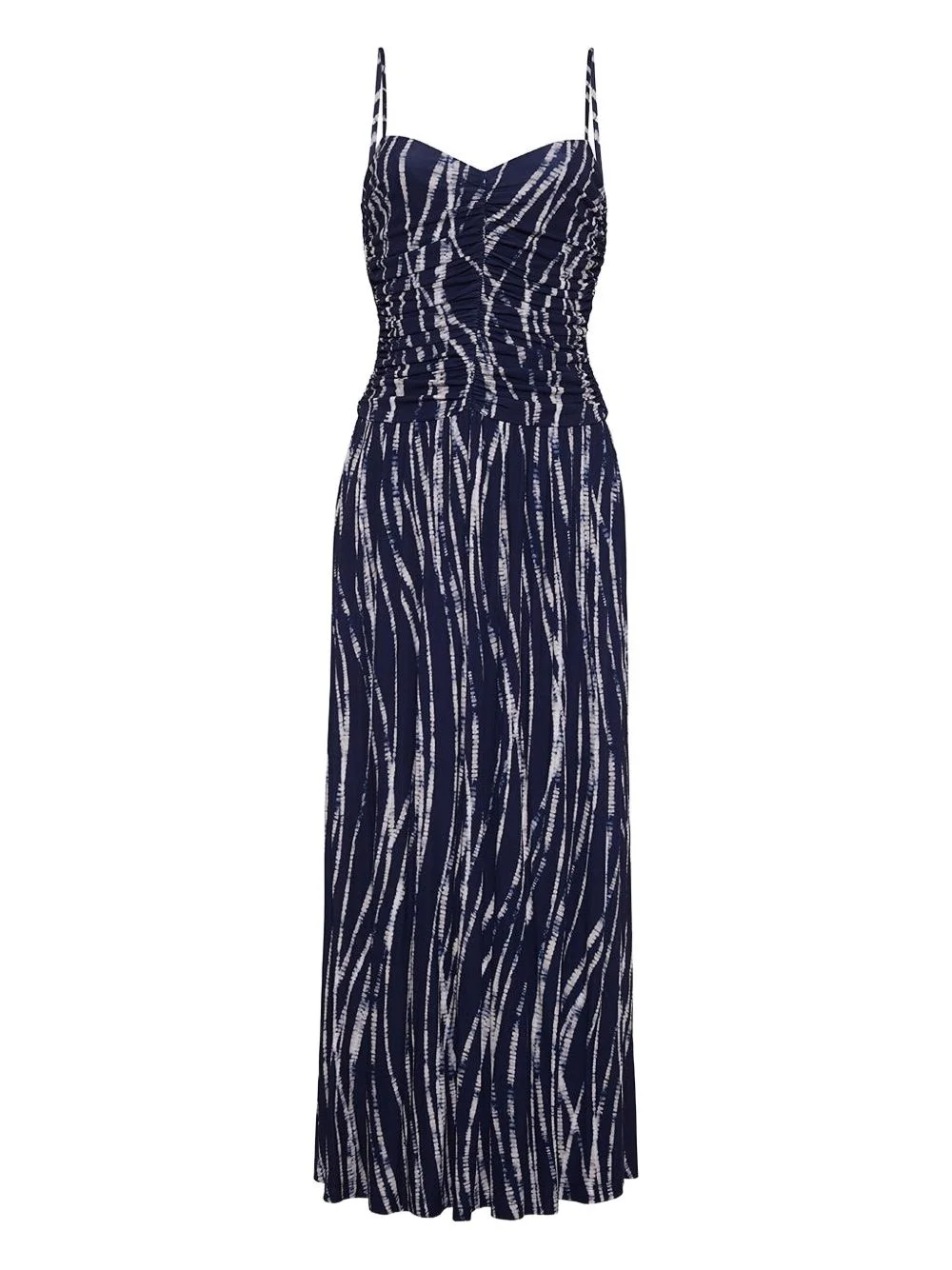 ruched midi dress Highlights - Evening blue - Ruched bodice - Abstract-pattern print - A-line skirt - Spaghetti straps - Midi length Imported Composition Viscose 93%, Spandex/Elastane 7% Washing instructions Dry Clean Only