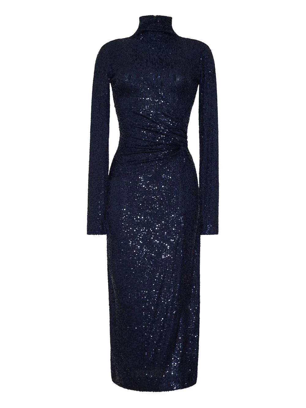 Ryan sequin high-neck midi dress Highlights - Dark blue - Sequin embellishment - High neck - Long sleeves - Fitted bodice - Draped waist detail Imported Composition Fabric 100% Washing instructions Read Manufacturer Guidelines