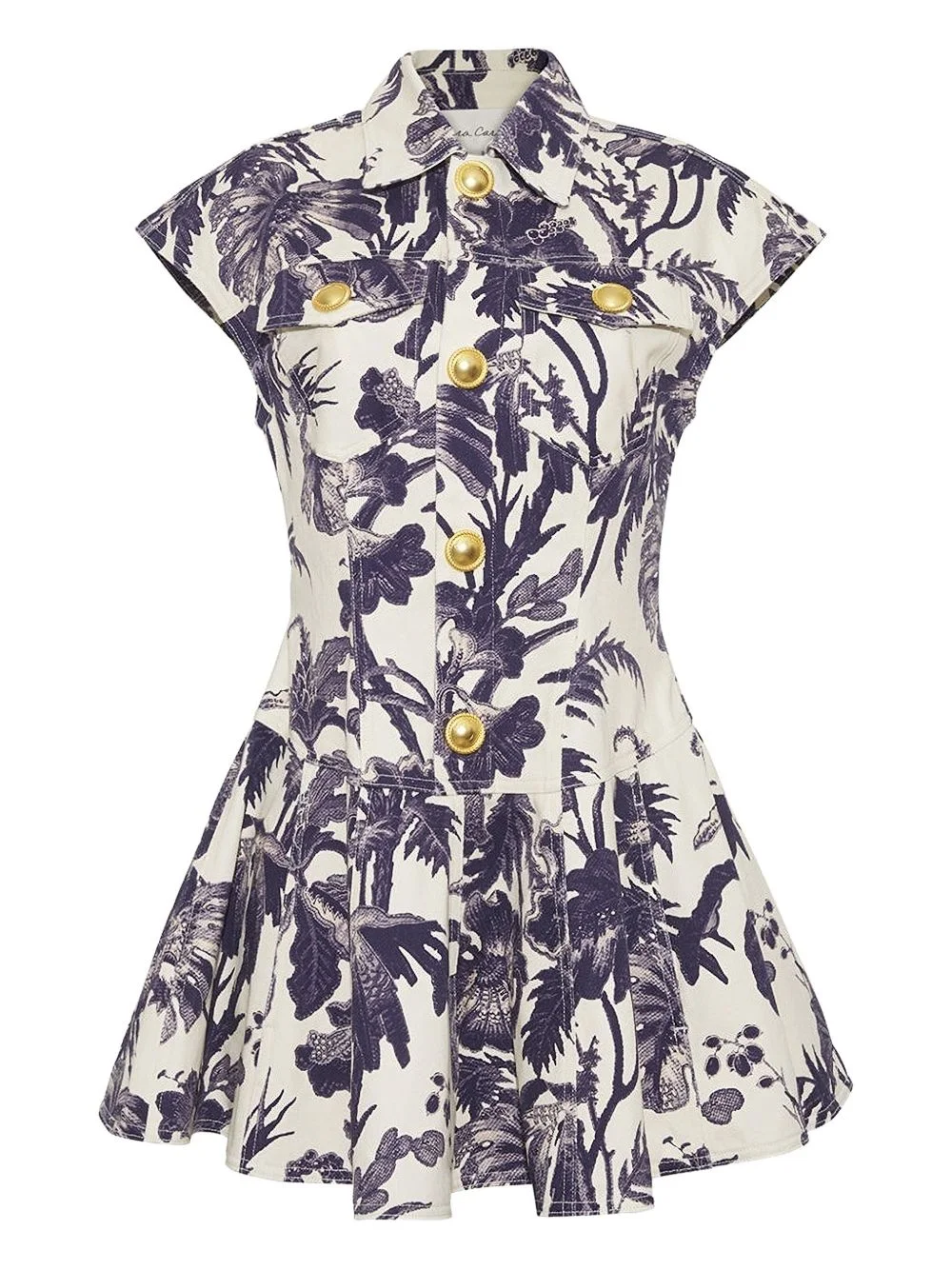 Ryce button-up floral mini dress Highlights - White and navy blue - Floral print - Button fastening - Short sleeves - Shirt collar - Canvas Imported Composition Cotton 100% Washing instructions Dry Clean Only
