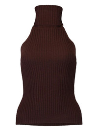 Samson ribbed turtleneck top Highlights - Brown - Turtleneck neckline - Ribbed knit - Sleeveless - Halter neck Imported Composition Wool 70%, Cashmere 30% Washing instructions Read Manufacturer Guidelines