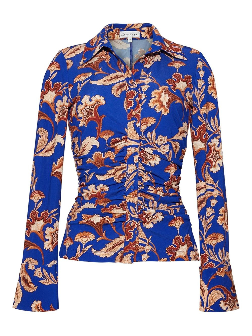 Shirley long-sleeves shirt Highlights - Royal blue - Button fastening - Fluted cuffs - Long sleeves Imported Composition Viscose 93%, Spandex/Elastane 7% Washing instructions Read Manufacturer Guidelines
