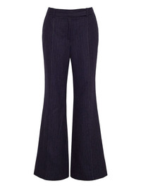 Tristan pinstripe flared trousers Highlights - Navy blue - Pinstripe pattern - Flared leg - Button and fly fastening Imported Composition Wool 67%, Nylon 30%, Other Materials 3% Washing instructions Read Manufacturer Guidelines