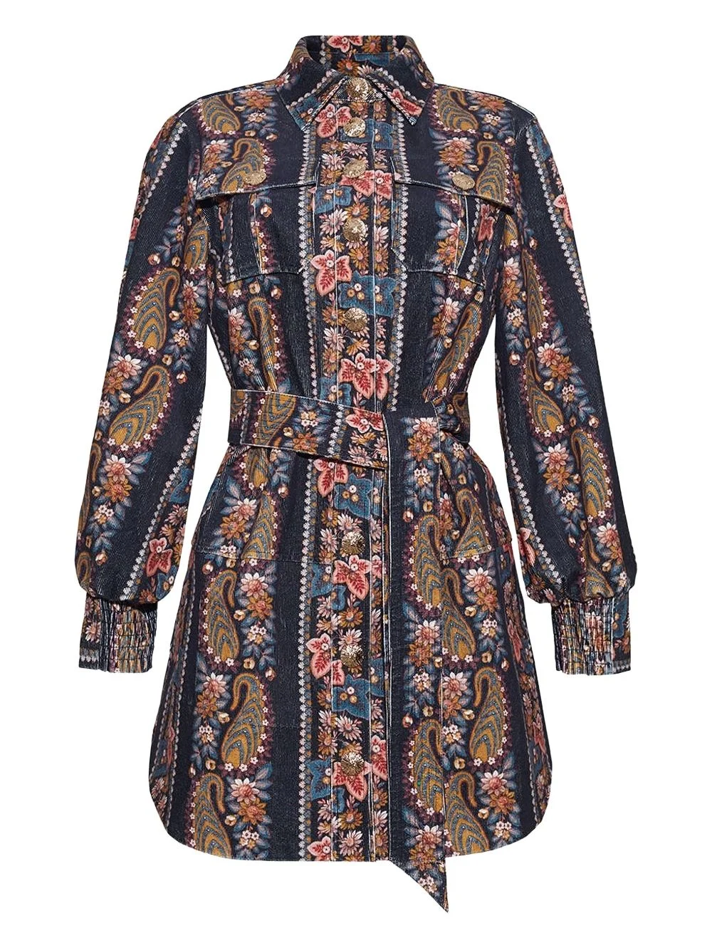Villena dress Highlights - Black - Paisley print - Front button fastening - Long sleeves - Belted waist - Cuffed sleeves Imported Composition Cotton 98%, Polyester 2% Washing instructions Read Manufacturer Guidelines