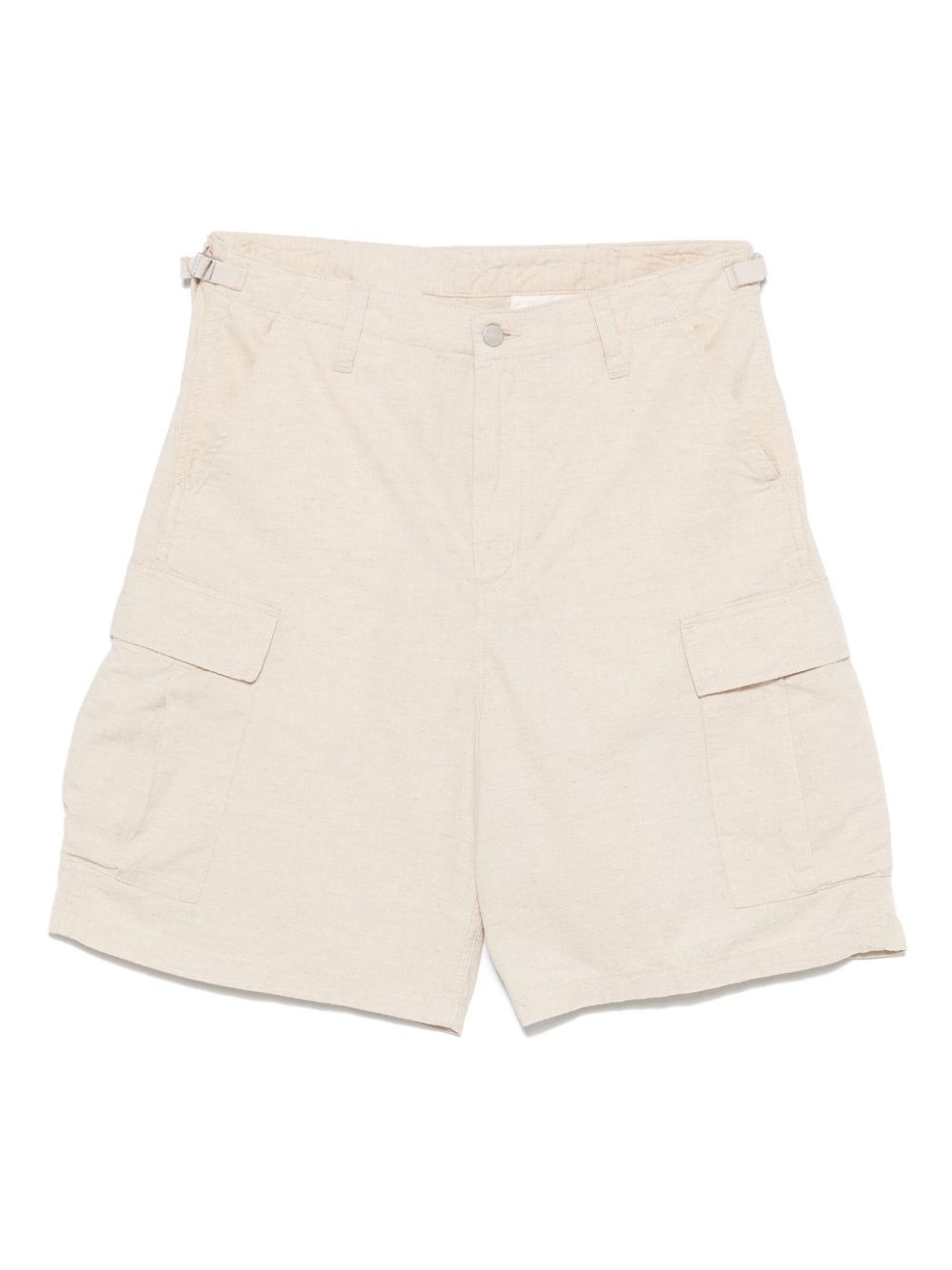 Alan cargo shorts Highlights - Light beige - Concealed fly and button fastening - Belt loops - Waist tabs - Two side slash pockets Imported Composition Lining: Polyester 65%, Cotton 35% Outer: Cotton 85%, Linen/Flax 15%
