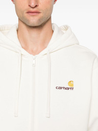 American Script zipped hoodie Highlights - Ivory white - Cotton blend - Jersey texture - Drawstring hood - Embroidered logo at the chest - Long sleeves - Ribbed cuffs and hem - Two side pouch pockets - Straight hem - Fleece lining - Front zip fastening Imported Composition Cotton 80%, Polyester 20% SIZE & FIT Model measurements Height 6 ft 2 in(1.87 m) Bust/Chest 37.79 in(96 cm) Hips 37.79 in(96 cm) Waist 30.31 in(77 cm) FittingInformation Designed for a relaxed fit, this piece allows for comfort and movement when worn The ribbed hem offers a close, comfortable fit Made from a midweight non-stretch fabric, this piece offers minimal elasticity when worn This piece fits true to size – take your usual size