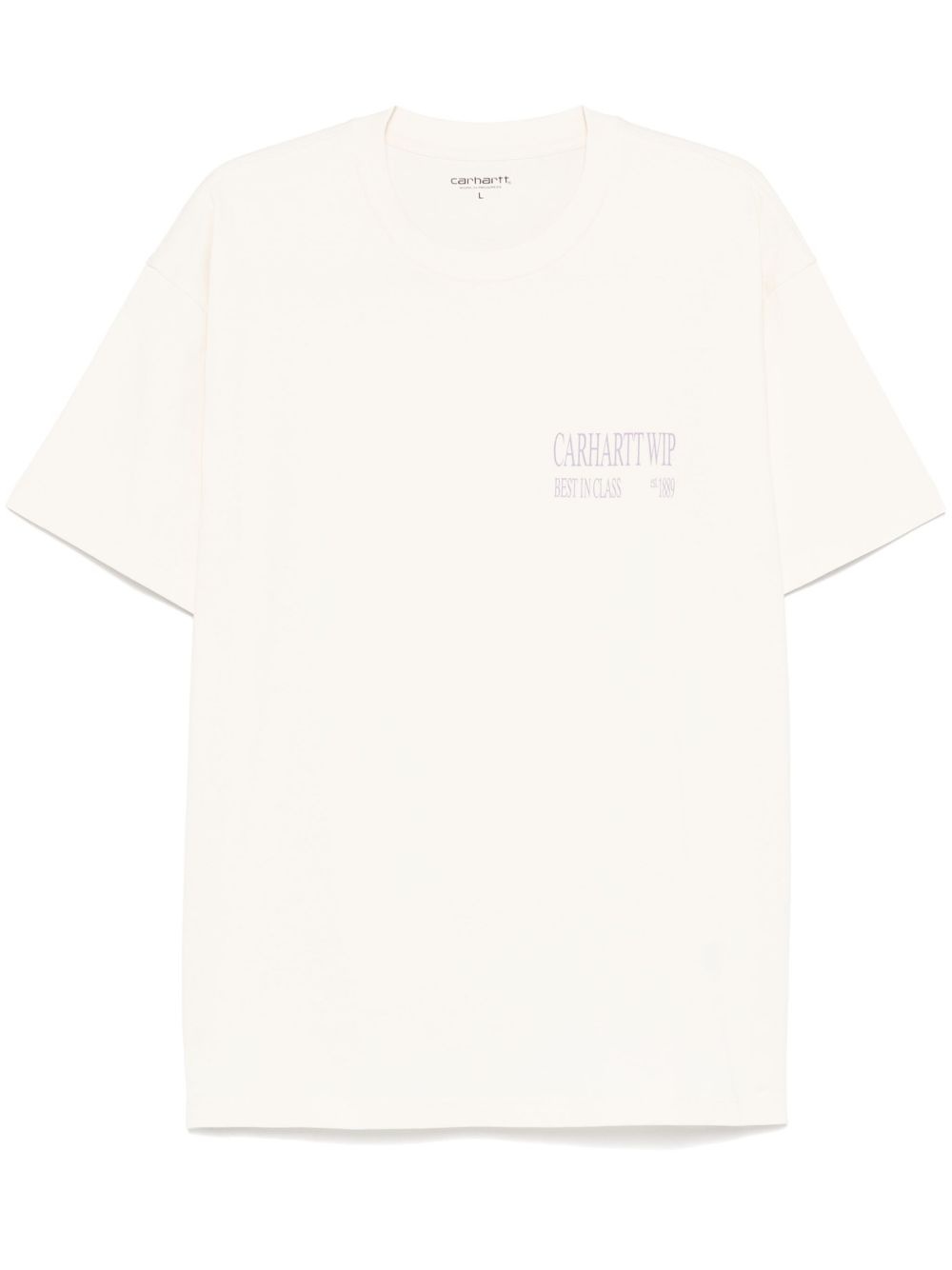 Best In Class T-shirt Highlights - Light beige - Logo print at the chest Imported Composition Organic Cotton 100% SIZE & FIT Model measurements Height 6 ft 2 in(1.87 m) Bust/Chest 38.18 in(97 cm) Hips 36.61 in(93 cm) Waist 29.13 in(74 cm) Measurement CHEST 40.94 in(104 cm) SLEEVE LENGTH 7.87 in(20 cm) LENGTH 25.98 in(66 cm) Shoulder Width 19.29 in(49 cm) FittingInformation Designed to be unstructured, offering a loose fit throughout Made from a midweight non-stretch fabric, this piece offers minimal elasticity when worn Washing instructions Machine Wash