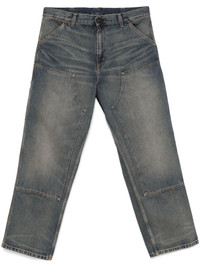 Double Knee jeans Highlights - Blue - Concealed fly and button fastening - Two side slash pockets - Multiple cargo pockets - Two rear patch pockets Imported Composition Lining: Polyester 65%, Cotton 35% Outer: Cotton 100% SIZE & FIT Model measurements Height 6 ft 2 in(1.88 m) Bust/Chest 36.61 in(93 cm) Hips 36.61 in(93 cm) Waist 29.92 in(76 cm) FittingInformation Designed with a straight leg, these jeans allow for an unrestricted and comfortable fit over the leg Sturdy and hard-wearing, this denim piece offers no stretch