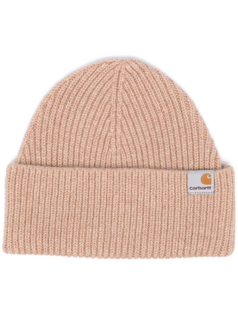 Gabe ribbed-knit beanie dusty brown wool-cashmere blend ribbed knit logo patch to the front turn-up brim Imported Composition Wool 90%, Cashmere 10%