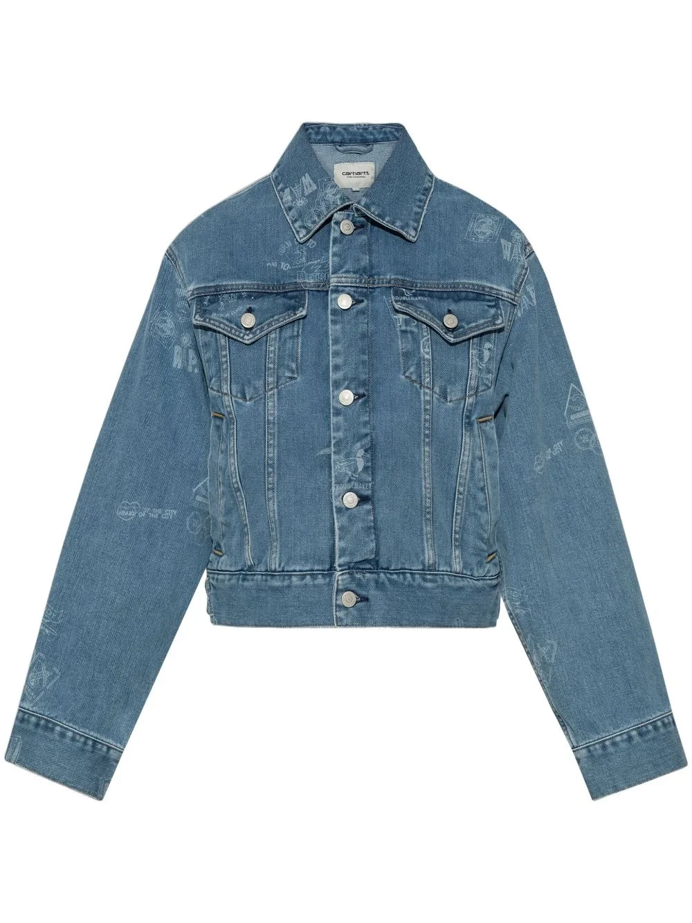 graphic-print jacket Highlights - Powder blue - Cotton - Denim - All-over graphic print - Logo patch to the rear - Spread collar - Front button fastening - Drop shoulder - Long sleeves - Buttoned cuffs - Two chest flap pockets - Straight hem Imported Composition Cotton 100%