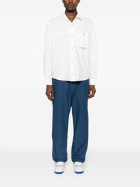 Hayworth mid-rise tapered trousers Highlights - Navy blue - Cotton - Interlock twill weave - Logo patch to the rear - Mid-rise - Belted waist - Elasticated waistband - Two side slit pockets - Two rear flap pockets - Tapered leg - Drawstring ankles Imported Composition Outer: Cotton 100% Lining: Polyester 65%, Cotton 35% SIZE & FIT Model measurements Height 6 ft 2 in(1.88 m) Bust/Chest 36.61 in(93 cm) Hips 35.82 in(91 cm) Waist 27.95 in(71 cm) FittingInformation Designed with a wide leg, offering a loose and roomy fit The internal drawstring at the hem allows for fitted preferences at the ankle Made from a midweight non-stretch fabric This piece fits true to size – take your usual size