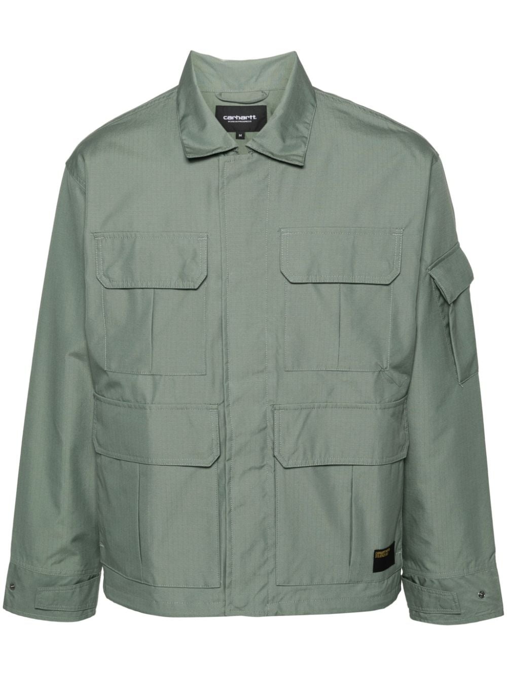 Holt ripstop shirt jacket Highlights - Sage green - Cotton blend - Ripstop texture - Tonal stitching - Spread collar - Four front flap pockets - Long sleeves with press-stud fastening cuffs - Sleeve flap pocket - Logo patch to the front - Drawstring straight hem - Concealed front zip and press-stud fastening Imported Composition Outer: Nylon 34% Lining: Cotton 100% SIZE & FIT Model measurements Height 6 ft 2 in(1.87 m) Bust/Chest 38.18 in(97 cm) Hips 36.61 in(93 cm) Waist 29.13 in(74 cm) FittingInformation Designed for a regular fit, allowing for a comfortably loose fit throughout the body The internal drawstring at the hem allows for fitted preferences Made from a midweight non-stretch fabric This piece fits true to size – take your usual size