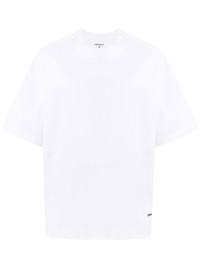 Link Script organic cotton T-shirt white/black organic cotton embroidered logo to the side crew neck short sleeves straight hem Conscious: This item is made from at least 50% organic materials Imported Composition Organic Cotton 100% SIZE & FIT Model measurements Height 6 ft 2 in(1.88 m) Bust/Chest 36.61 in(93 cm) Hips 35.82 in(91 cm) Waist 27.95 in(71 cm) FittingInformation This piece fits true to size. We recommend you get your regular size Cut for a loose fit Made with a mid-weight fabric Washing instructions Machine Wash