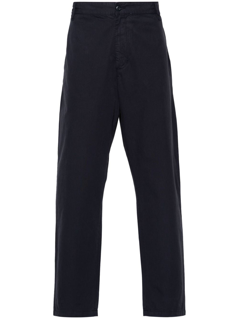 logo-applique gabardine tapered trousers Highlights - Navy blue - Cotton - Gabardine weave - Belt loops at the waist - Two side welt pockets - Two rear button-fastening jetted pockets - Applique logo to the rear - Internal logo tag - Tapered leg - Front button and zip fastening Imported Composition Outer: Cotton 100% Lining: Cotton 100% SIZE & FIT Model measurements Height 6 ft 2 in(1.87 m) Bust/Chest 38.18 in(97 cm) Hips 36.61 in(93 cm) Waist 29.13 in(74 cm) FittingInformation Designed for a straight-leg, allowing for an unrestricted and comfortable fit over the leg Made from a midweight non-stretch fabric This piece fits true to size – take your usual size