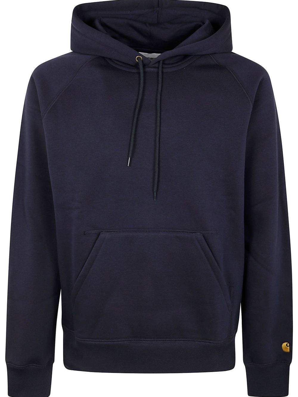logo-embroidered hoodie Highlights - Navy blue - Drawstring hood - Front pouch pocket - Long raglan sleeves - Ribbed cuffs and hem Imported Composition Cotton 58%, Polyester 42%