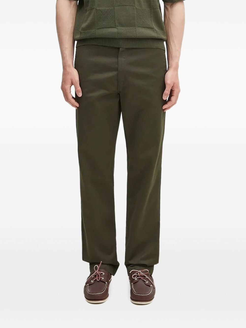 logo-patch flat-front trousers Highlights - green - Flat front - Button fastening - Welt pockets - Square label Imported Composition Polyester 65%, Cotton 35% Washing instructions Read Manufacturer Guidelines