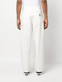 logo-patch straight-leg trousers off-white cotton logo patch to the rear belt loops front button and zip fastening two side slit pockets two rear patch pockets straight leg Imported Composition Outer: Cotton 100% Lining: Polyester 65%, Cotton 35% SIZE & FIT Model measurements Height 6 ft 2 in(1.87 m) Bust/Chest 36.22 in(92 cm) Hips 37 in(94 cm) Waist 27.95 in(71 cm) Washing instructions Machine Wash