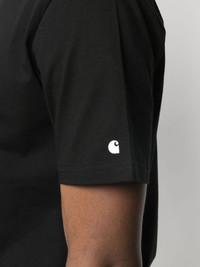 logo-print cotton T-Shirt black cotton jersey knit logo print to the side crew neck short sleeves Imported Composition Outer: Cotton 100% SIZE & FIT Model measurements Height 6 ft 2 in(1.89 m) Bust/Chest 35.43 in(90 cm) Hips 36.61 in(93 cm) Waist 28.74 in(73 cm) FittingInformation This piece fits true to size. We recommend you get your regular size Cut for a relaxed fit Made with a mid-weight fabric Washing instructions Machine Wash