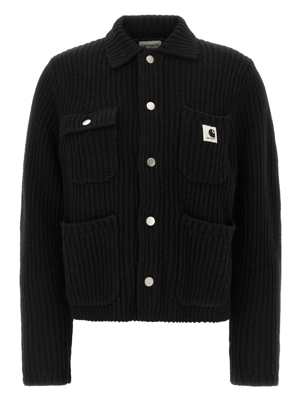 Michigan ribbed cardigan Highlights - Black - Ribbed knit - Snap button fastening - Front pockets - Logo patch Imported Composition Bio Acetate 75%, Wool 15%, Polyester 10% Washing instructions Read Manufacturer Guidelines