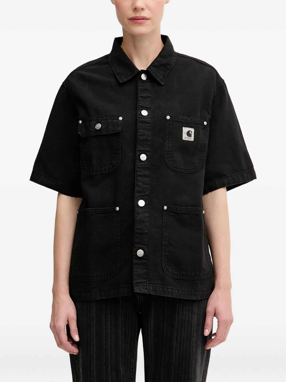 short-sleeve pocket shirt Highlights - Black - Short sleeves - Button fastening - Chest pockets - Logo patch Imported Composition Cotton 58%, Linen/Flax 42% Washing instructions Read Manufacturer Guidelines