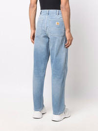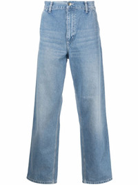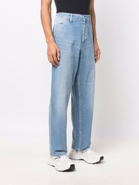 Simple straight-leg jeans light blue cotton washed denim logo patch to the rear straight leg mid-rise two diagonal pockets to the sides two rear patch pockets concealed fly and button fastening belt loops Imported Composition Lining: Polyester 65%, Cotton 35% Outer: Cotton 100% SIZE & FIT Model measurements Height 6 ft 2 in(1.87 m) Bust/Chest 38.18 in(97 cm) Hips 36.61 in(93 cm) Waist 29.13 in(74 cm) FittingInformation This piece fits true to size. We recommend you get your regular size Designed for a slim fit at the waist and loose over the leg Made with a mid-weight non-stretch fabric Washing instructions Machine Wash