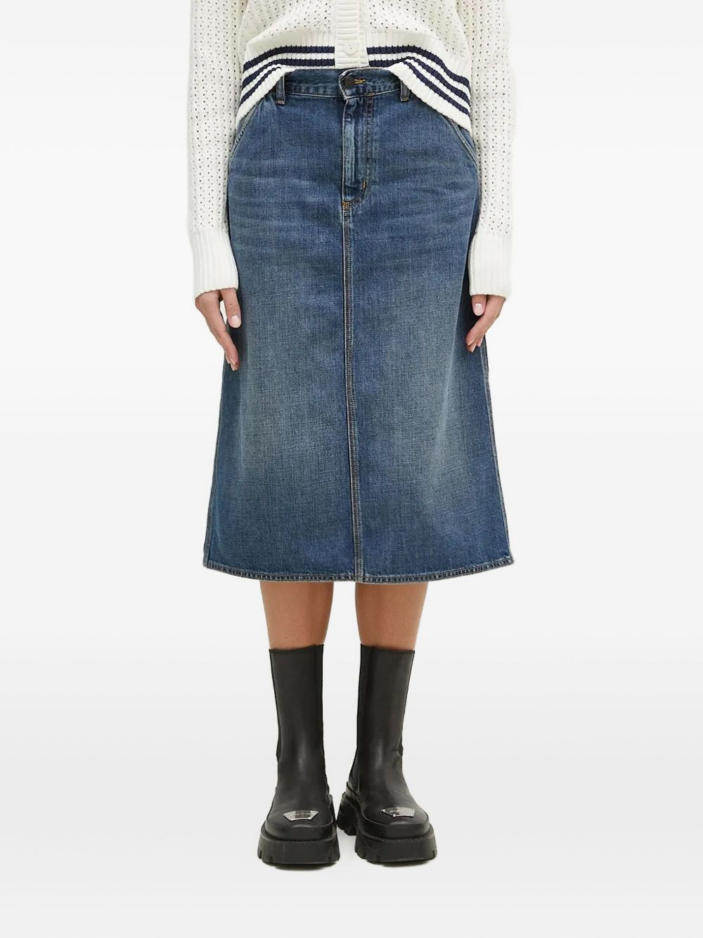 single knee skirt Highlights - Light blue - Belt loops - Back pockets - Front pockets - Side pockets - Logo patch Imported Composition Cotton 100%