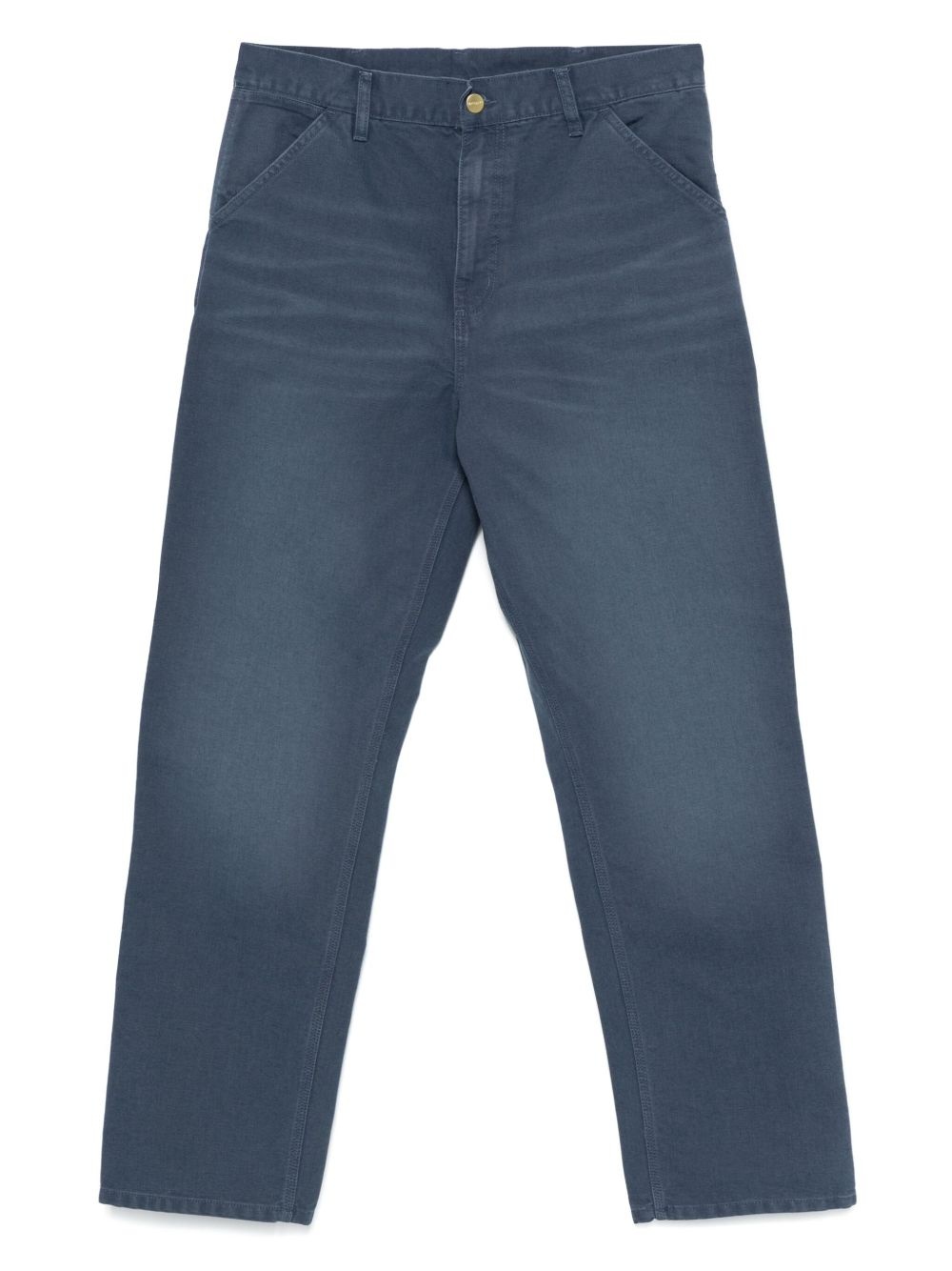 Single Knee trousers Highlights - Blue grey - Button and concealed fly fastening - Dual rear pockets - Front utility pockets - Embroidered logo patch - Belt loops - Relaxed fit Imported Composition Lining: Polyester 65%, Cotton 35% Outer: Organic Cotton 100% SIZE & FIT Model measurements Height 6 ft 2 in(1.87 m) Bust/Chest 36.22 in(92 cm) Hips 37 in(94 cm) Waist 27.95 in(71 cm) FittingInformation Designed for a relaxed straight leg, allowing a comfortable and loose fit over the leg Made from a midweight non-stretch fabric