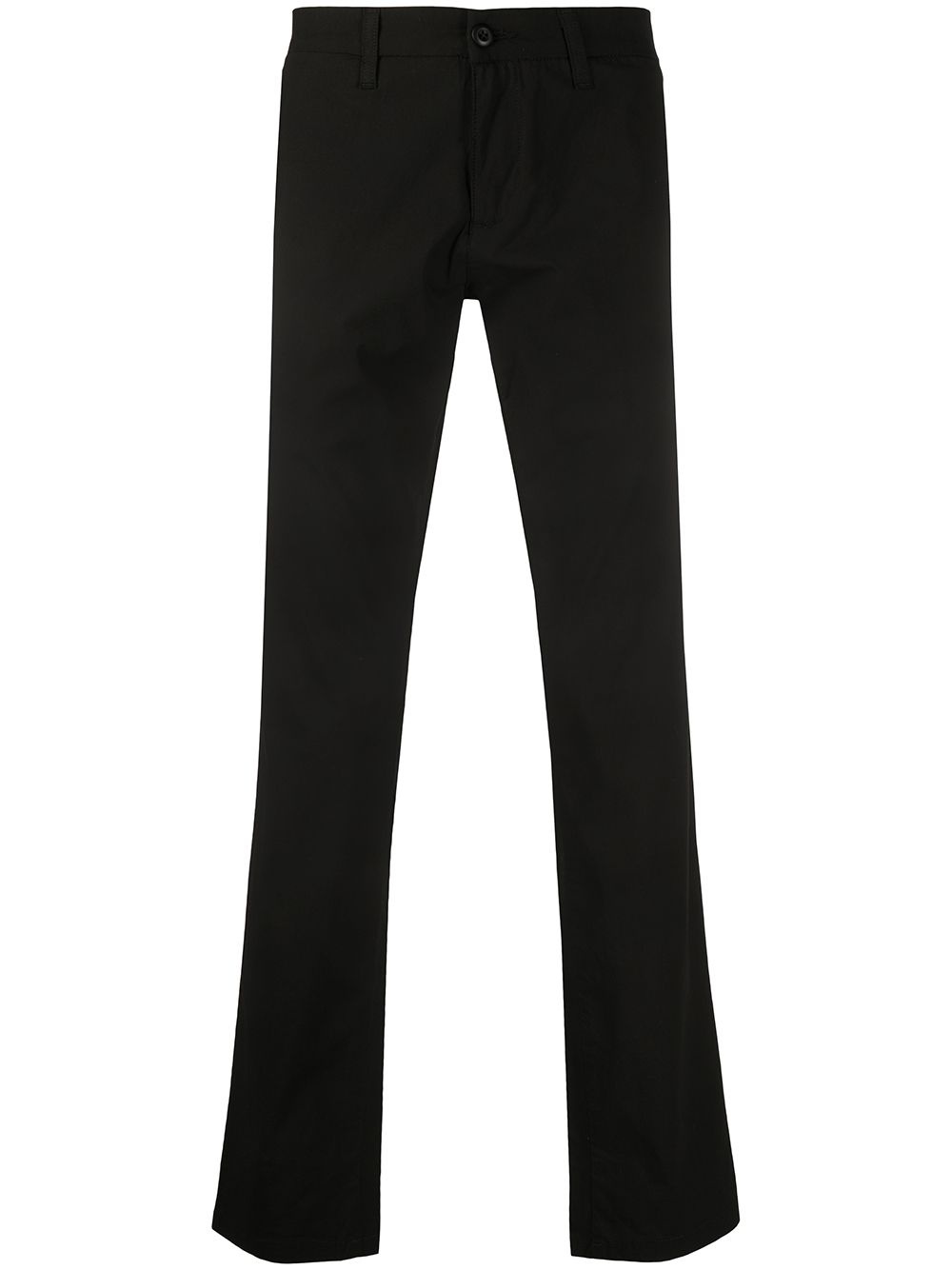 slim fit chinos Black cotton blend slim fit chinos from Carhartt WIP featuring a waistband with belt loops, a button and zip fly, side pockets, rear pockets and a regular length. Imported Composition Outer: Cotton 98%, Spandex/Elastane 2% Lining: Polyester 65%, Cotton 35% SIZE & FIT Model measurements Height 6 ft 2 in(1.89 m) Bust/Chest 37.79 in(96 cm) Hips 37 in(94 cm) Waist 29.92 in(76 cm)