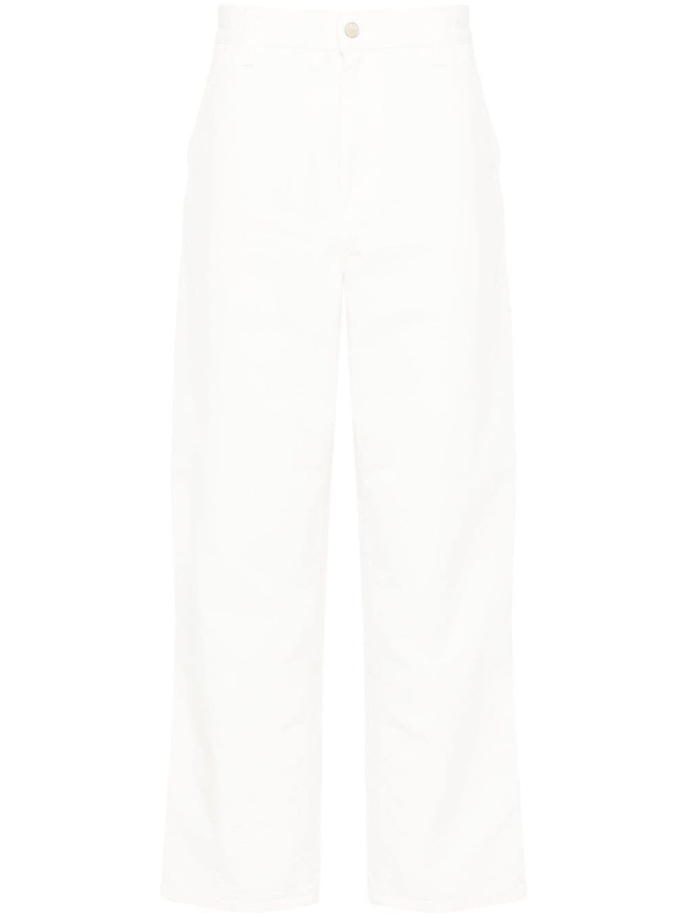 Single Knee straight-leg trousers Highlights - White - Organic cotton - Canvas - Logo patch to the rear - Belt loops - Carpenter strap - Button fly fastening - Straight leg - Two side slit pockets - Multiple patch pockets Imported Composition Outer: Organic Cotton 100% Lining: Polyester 65%, Cotton 35% SIZE & FIT Model measurements Height 6 ft 2 in(1.87 m) Bust/Chest 36.41 in(92.5 cm) Hips 35.43 in(90 cm) Waist 29.52 in(75 cm) FittingInformation Designed for a straight-leg, allowing for an unrestricted and comfortable fit over the leg Made from a midweight non-stretch fabric This piece fits true to size – take your usual size Washing instructions Machine Wash