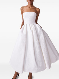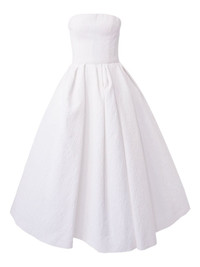 cloque-effect midi dress Highlights - White - Concealed rear zip fastening - Strapless - Pleat detailing - Flared skirt Made in United States Composition Cotton 95%, Viscose 5% Washing instructions Dry Clean Only