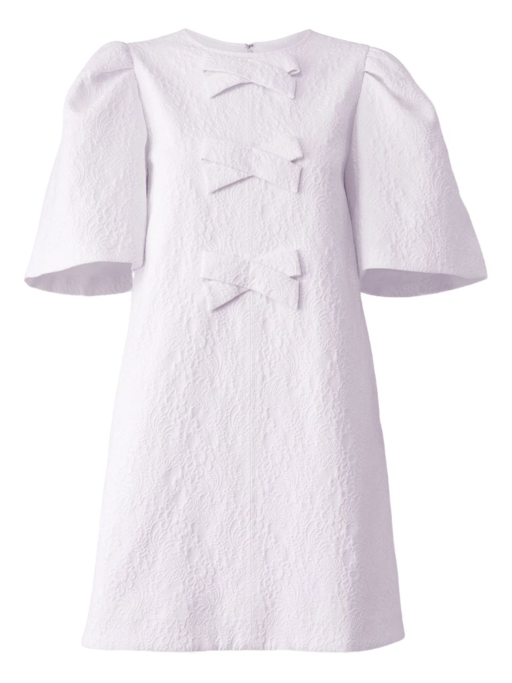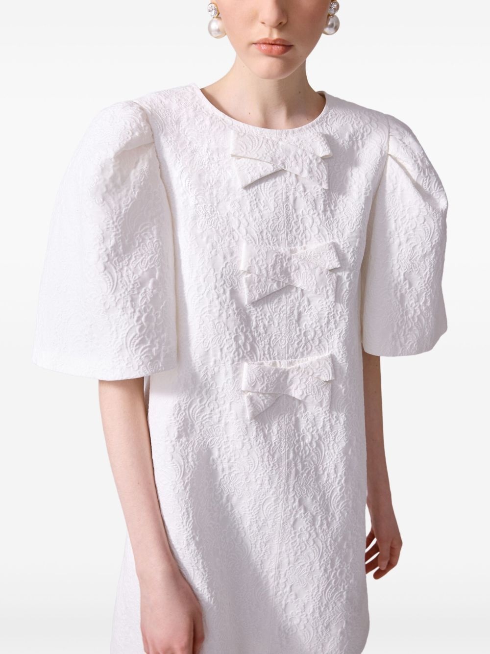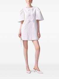 cloque-effect mini dress Highlights - White - Concealed rear zip fastening - Crew neck - Short sleeves - Bow detailing Made in United States Composition Cotton 95%, Viscose 5%
