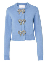 crystal-bow cardigan Highlights - Cornflower blue - Concealed front fastening - Ribbed cuffs and hem - Crew neck - Long sleeves Made in Italy Composition Cashmere 50%, Nylon 40%, Fabric 10% Washing instructions Dry Clean Only