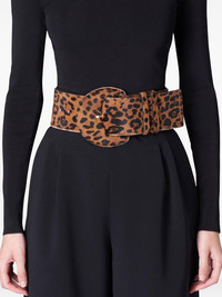 Demi Lune belt Highlights - Brown - Leopard print - Half-moon buckle - Leather Made in Italy Composition CALFSKIN 100%, Calf Hair 100%