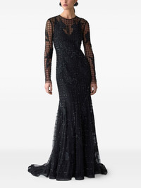 embroidered-tulle trumpet gown Highlights - Black - Embroidered tulle - Sequin embellishment - Long sleeves - Sheer yoke - Fishtail skirt Imported Composition Nylon 100% Washing instructions Dry Clean Only