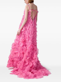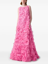 floral-applique gown Highlights - Hot pink - Rear tie fastening - Round neck - Sleeveless - V-back Made in United States Composition Nylon 100%